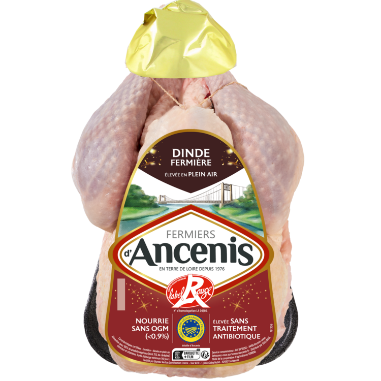 - Farcir la dinde. Huiler la peau, la saler puis la disposer dans un plat à rôtir. Enfourner à 180 °C pendant environ 3h30, en n’oubliant pas d’arroser soigneusement la dinde tout au long de la cuisson.